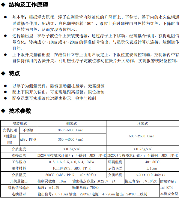 UHZ 系列翻柱式磁浮子液位计